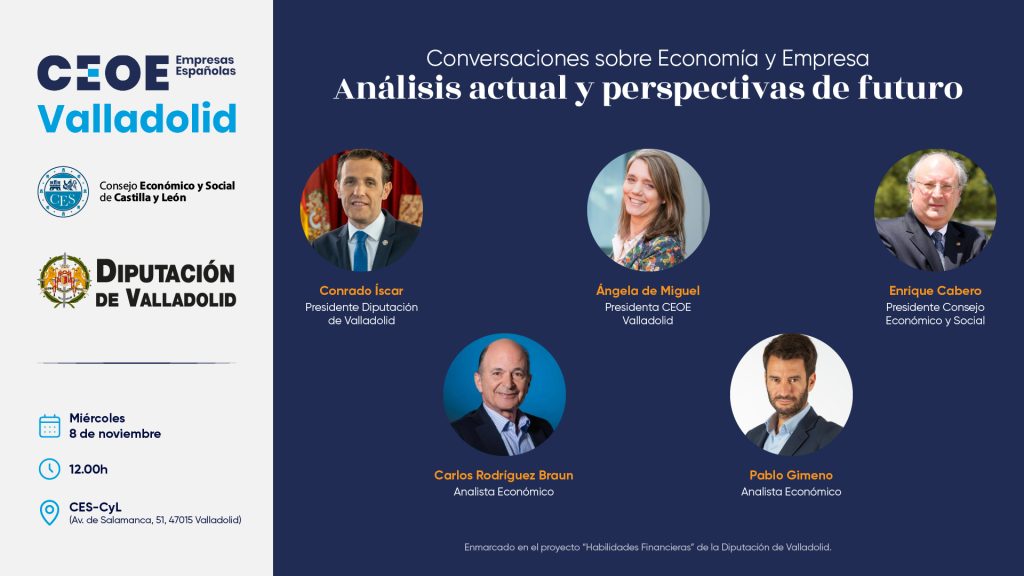 El próximo 8 de noviembre a las 12:00 en la sede del Consejo Económico y Social de Castilla y León (Av. de Salamanca, 51, 47015 Valladolid) en el marco del “Programa de Habilidades Financieras” que venimos desarrollando con el apoyo de la Diputación de Valladolid se desarrollará la Jornada: “Análisis actual y perspectivas de futuro”