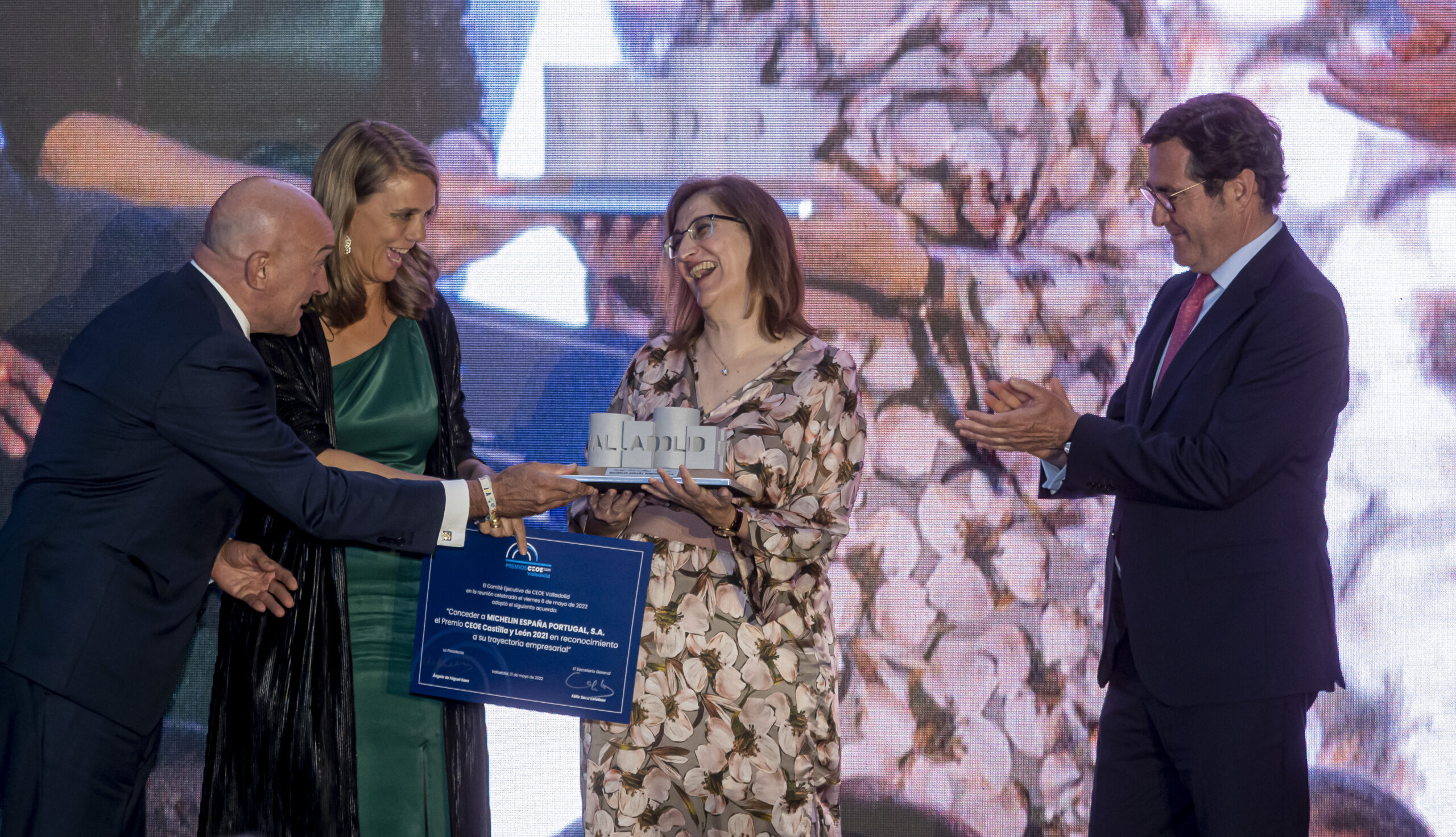 Las empresas galardonadas han sido Michelin España Portugal, S.A. (Premio CEOE Castilla y León 2021), Ibertec SAU (CEOE Valladolid 2021 – Empresa Agrupecuaria), Industrias Maxi (CEOE Valladolid 2021 – Empresa Industrial), Grupo CMD SALUD (CEOE Valladolid 2021 – Empresa de Servicios), Malena Engineering (CEOE Valladolid 2021 – Excelencia en Innovación y Digitalización), ABN Pipe (CEOE Valladolid 2021 – Gestión Sostenible), Real Valladolid S.A.D (CEOE Valladolid 2021 – Reconocimiento 30 aniversario) y Autoridad Portuaria de Valencia ‘Valencia Port’ (CEOE Valladolid 2021 – Reconocimiento institucional).